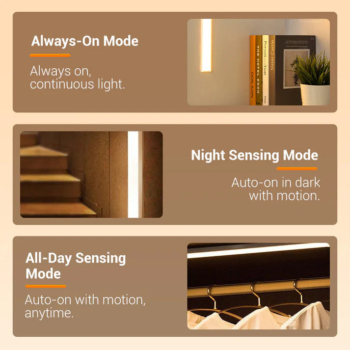 🔍 Sensor de Movimiento Inteligente: Con el sensor de movimiento integrado, la luz de armario con sensor se enciende automáticamente al detectar movimiento y se apaga sola después de un período de inactividad. Además, puedes ajustar el brillo según tus necesidades! ✨