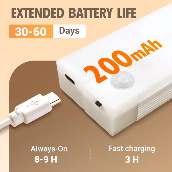 🔋 Recargable y Batería de Larga Duración: Carga fácilmente con cable USB-C y disfruta de horas de iluminación sin preocuparte por cambiar pilas. En modo AUTO, dura entre 50 y 70 días con un uso de 20 veces al día (25 segundos cada vez). Funciona incluso en cortes de luz, garantizando iluminación constante! ⚡